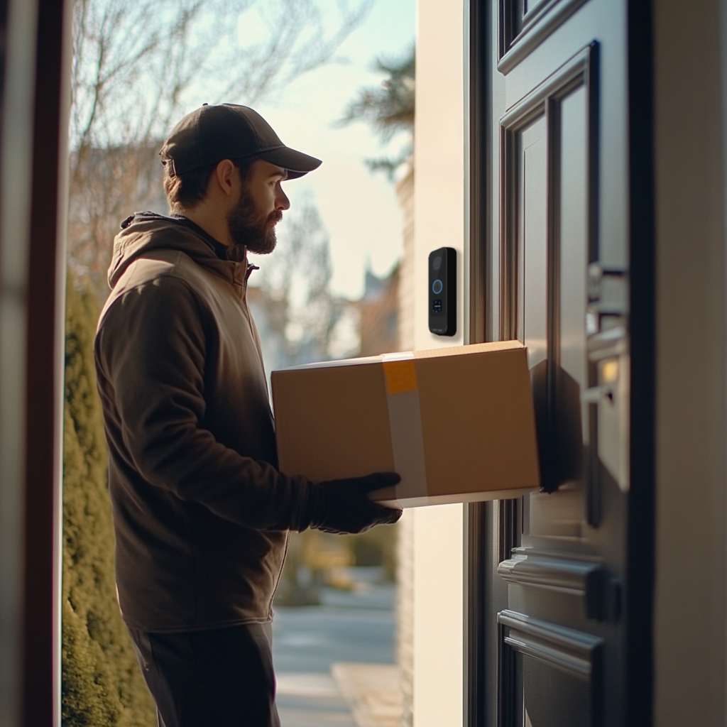 Never miss a delivery or guest with a video doorbell at the front door. With the press of a button you’ll hear an installed chime speaker ring, or if you’d prefer to receive directly to your mobile app, you can answer the door with you phone, and ask them to leave the package at the door. Our doorbells even have an additional downward facing camera to monitor your package once it’s been dropped off.